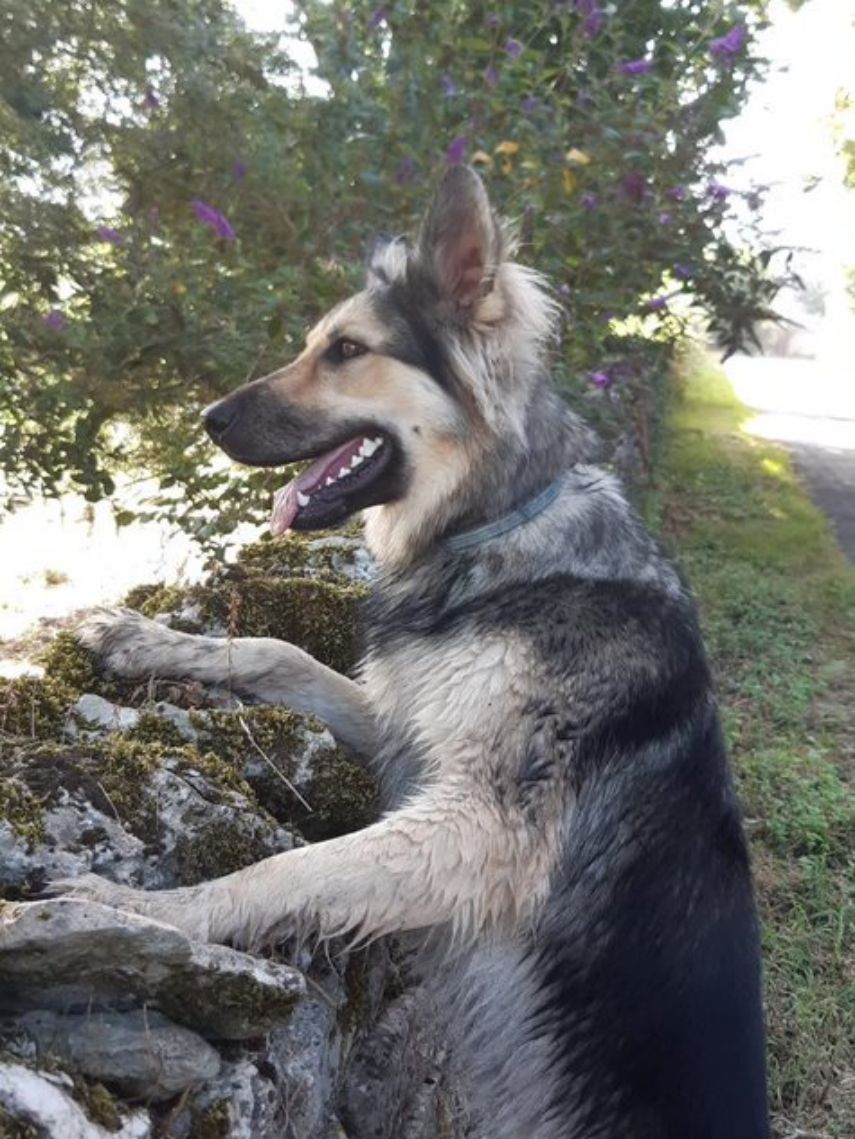 Arrow le grand, le beau, le magnifique 😍. Un amour de chien 🐕 super glue puissance 10 très proche de ses maîtres. Très joueur et un peu brut de pomme avec son chat 🐈⬛ qui le recadre de temps en temps 😼gentiment. C’est un chien un brin cleptomane alors attention aux personnes qui ne rangent pas leurs affaires 😅. Un grand jardinier : déterre les plantes quand elles viennent d’être plantées, quelques trous, mange les pommes sur l’arbre … et n’aime pas le sac d’ordi de sa maîtresse car cela signifie travail et donc pas de jeu alors il attire l’attention par n’importe quel moyen : bouscule, embête son chat en tirant la couverture pour le faire tomber, va fouiller dans le sac, tire les feuilles et crayons 🖍️etc….