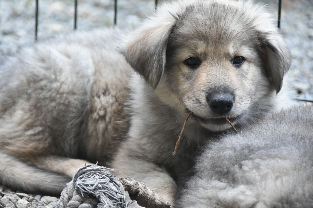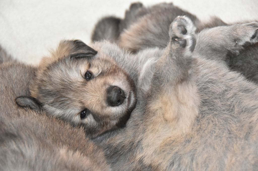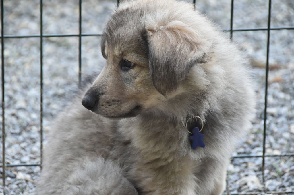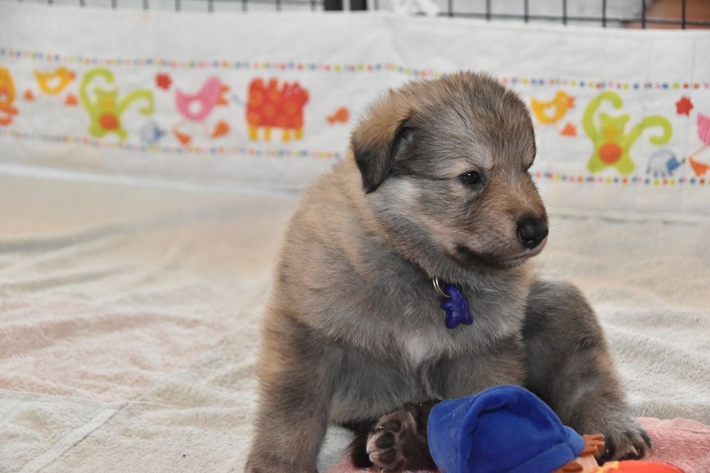 Baby Petit Loup - Mâle 4 - Collier Bleu - Argenté charbonné - (02h50)