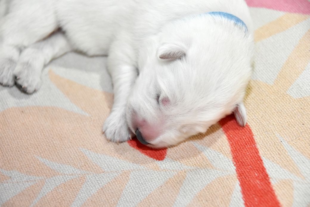 Cuty Aslan - Mâle 5 - Collier Cyan - Blanc - (09h30)