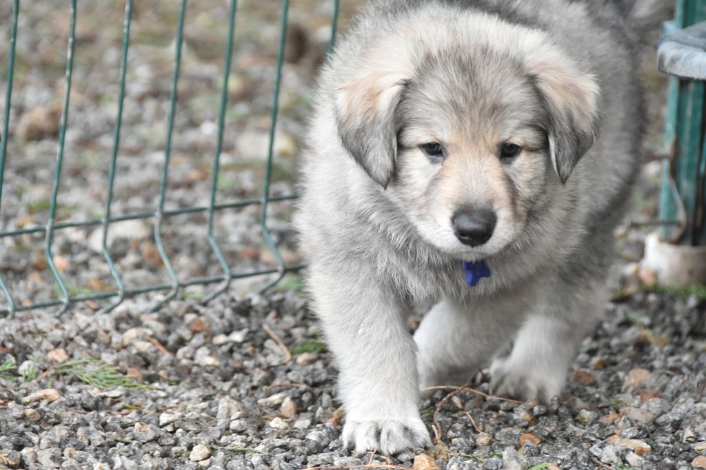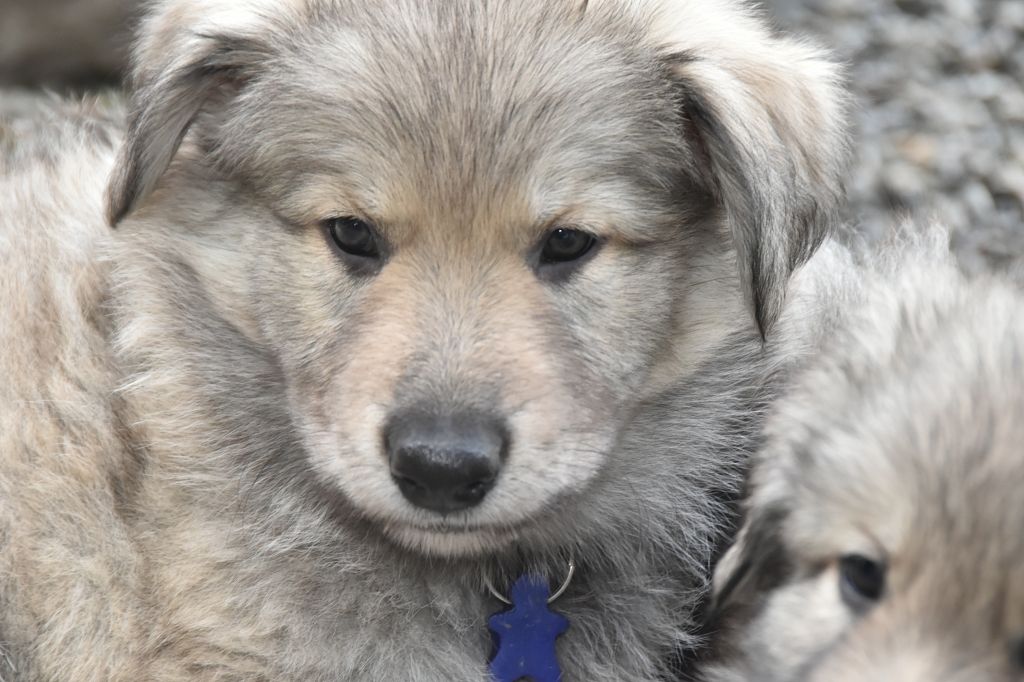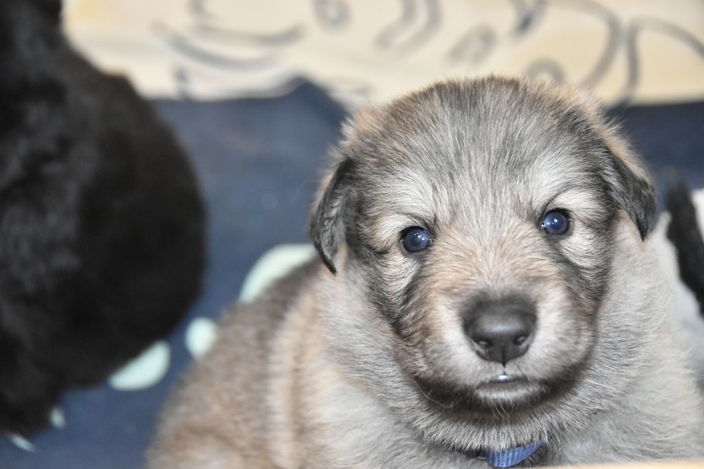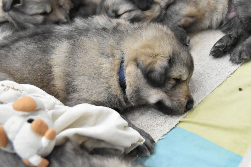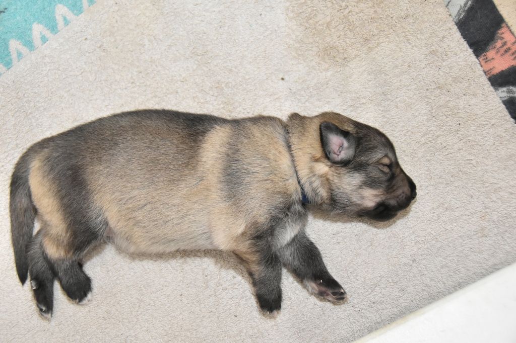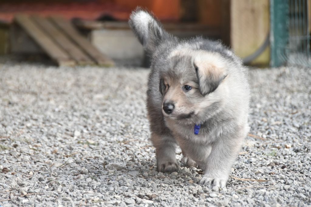 Baby Petit Loup - Mâle 4 - Collier Bleu - Argenté charbonné - (02h50)