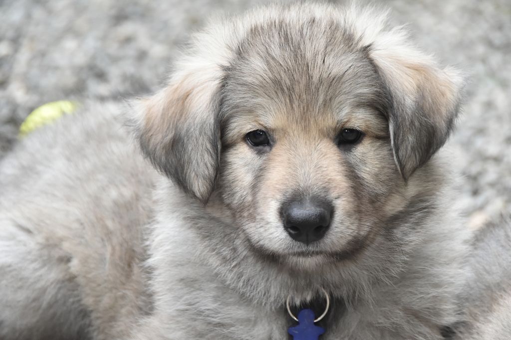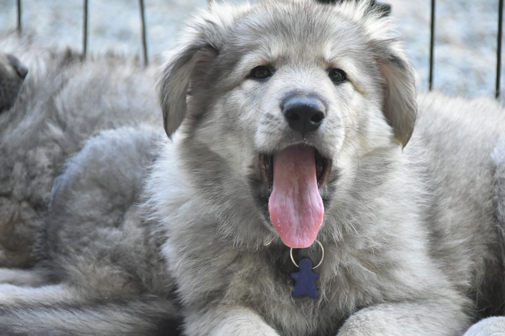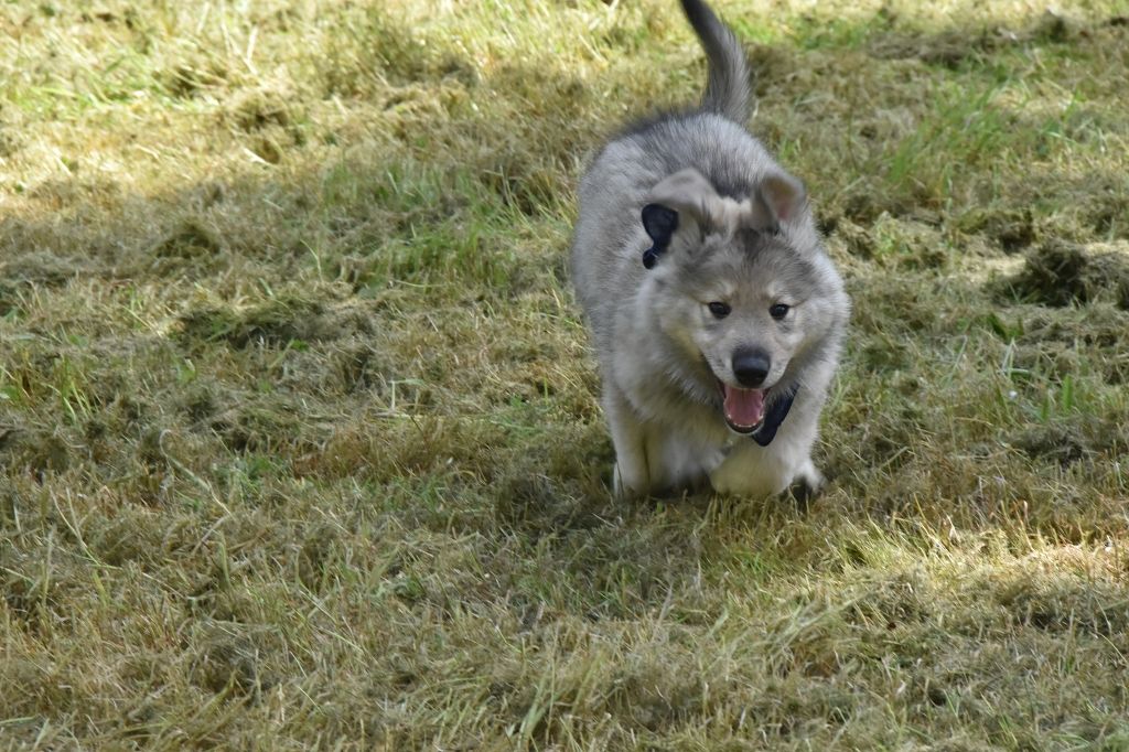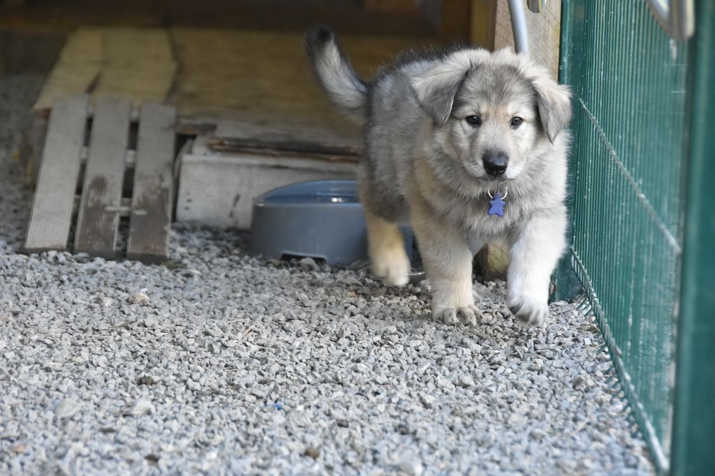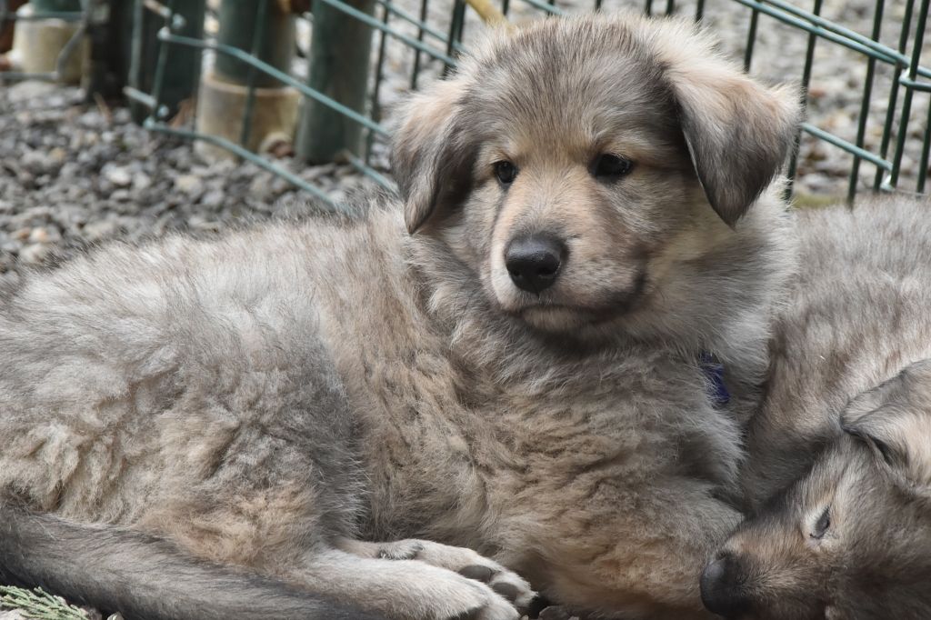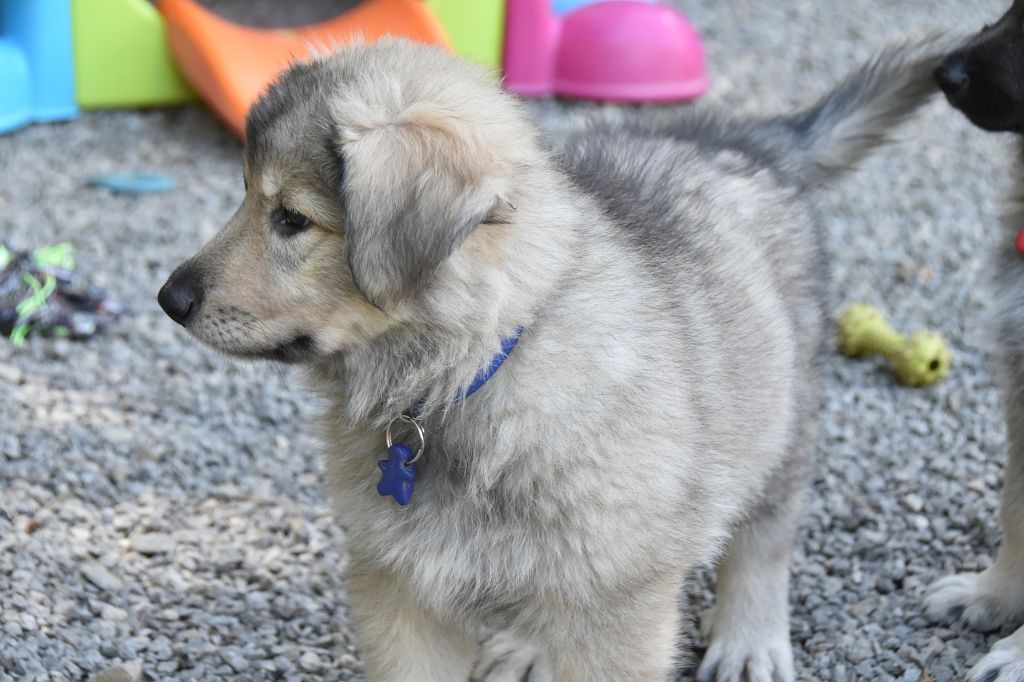 Baby Petit Loup - Mâle 4 - Collier Bleu - Argenté charbonné - (02h50)