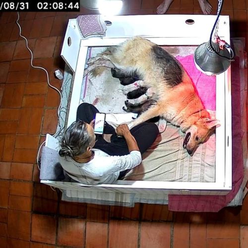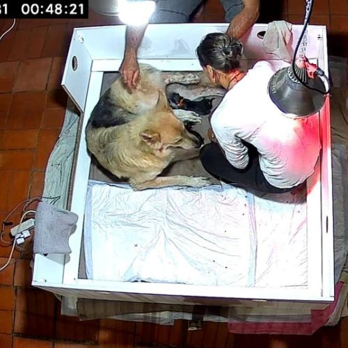 Pour la toute première fois, nos amis Adri & Léo ont suivi la mise bas de Louve de chez eux grâce à la caméra de surveillance.